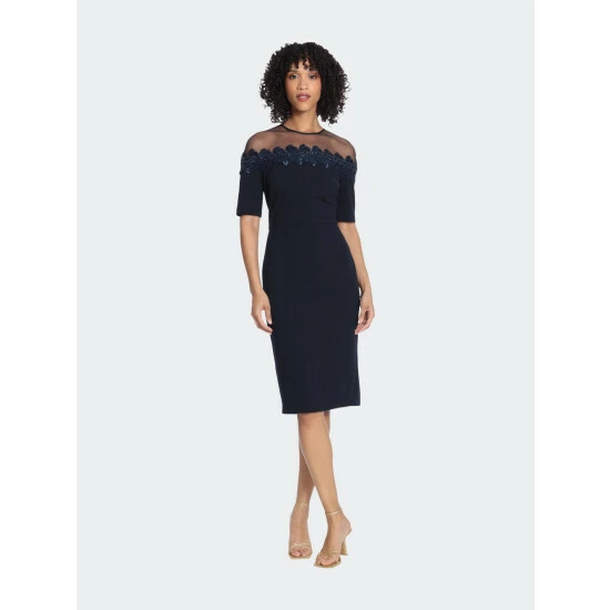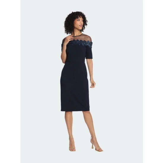 Meet the Camden Illusion dress. This knee-length number is an all new update to the best-selling illusion dress. Complete with lace-lined neckline and elbow-length sleeves, the Camden dress is perfect for summer events.