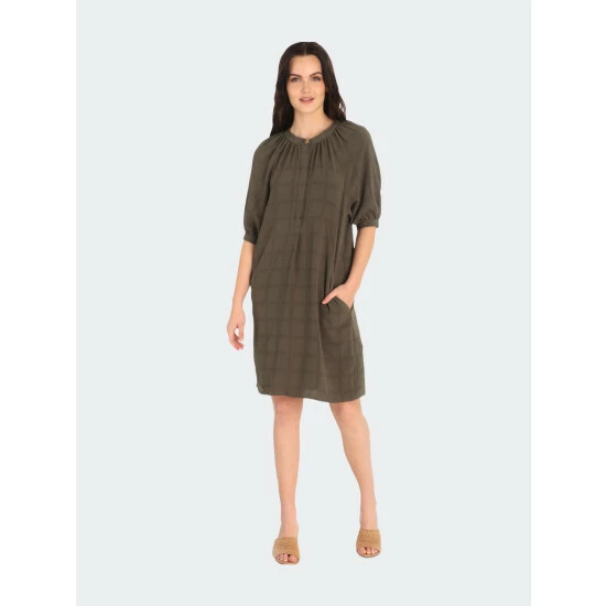 With its 3/4 elbow sleeve, easy knee-length in a seasonless olive green, you’ll want to make our Gianna shift dress your workwear go-to.