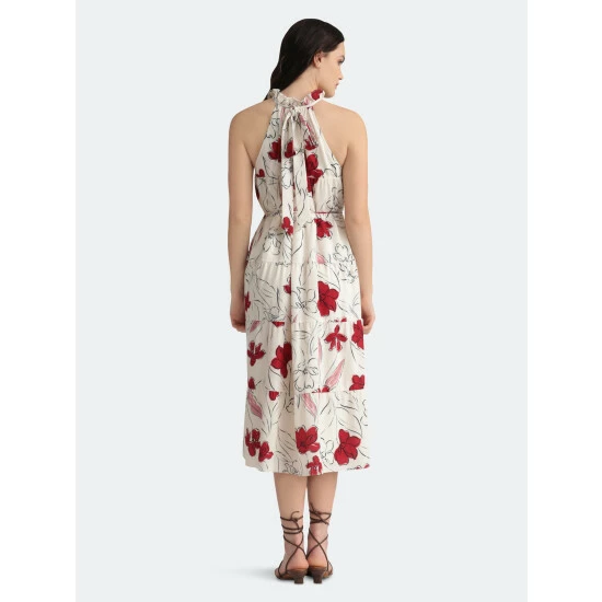 Meet juliet, our ruffle neck multi tier midi! She features a halter neckline and removable waist tie.
