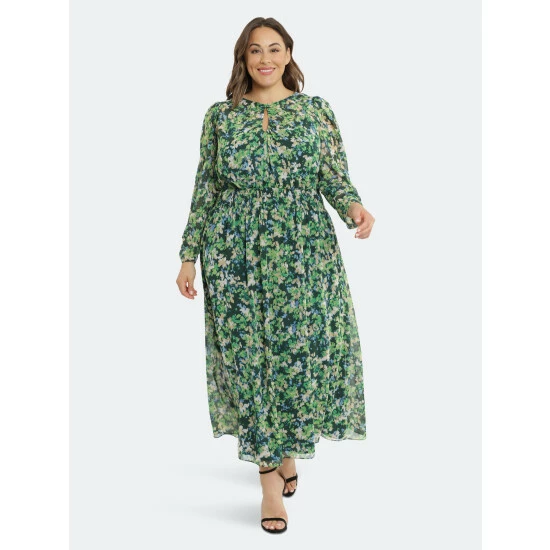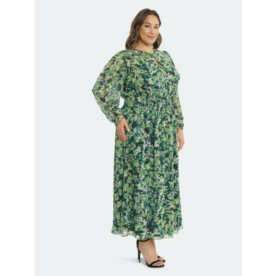 Meet liona. We love her hazy floral print in a beautiful fall green. Liona features a smocked waist and keyhole neckline detail.