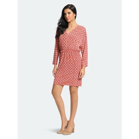 This dolman sleeve dress is Blakely, we love her geo-print and elasticated waist!