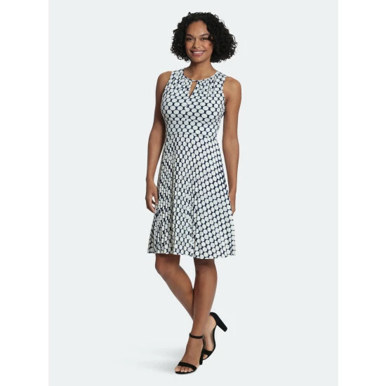 Cala is sweet dot-print dress with tons of attitude. We love her pleated skirt and inset waist, paired with her keyhole neckline!