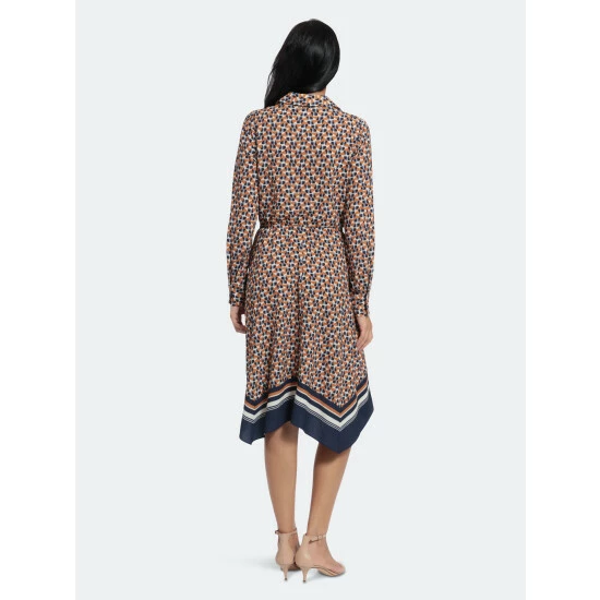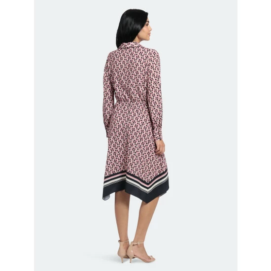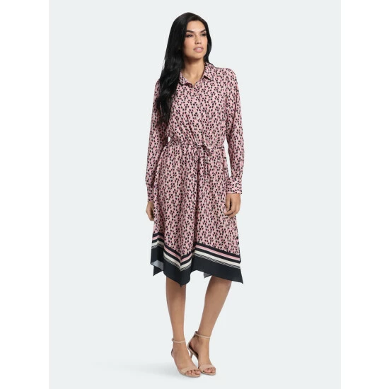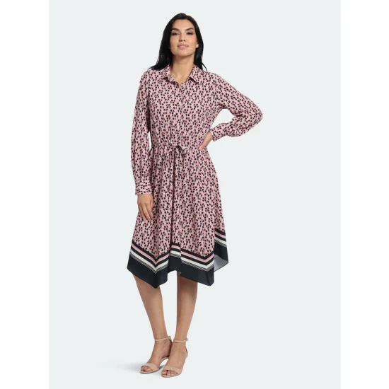 Celise is a midi length shirtdress with an adorable waist tie. We love her unique print and hanky hem!
