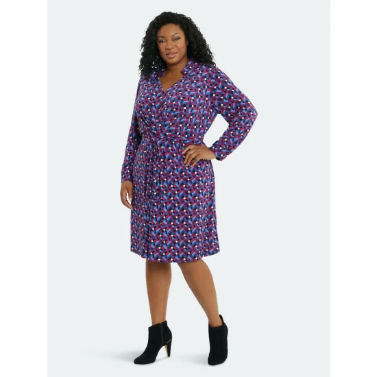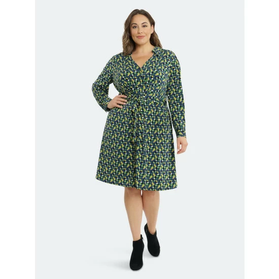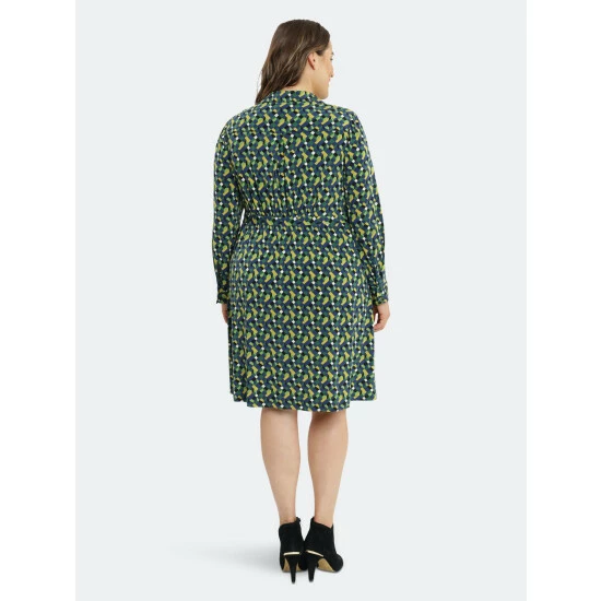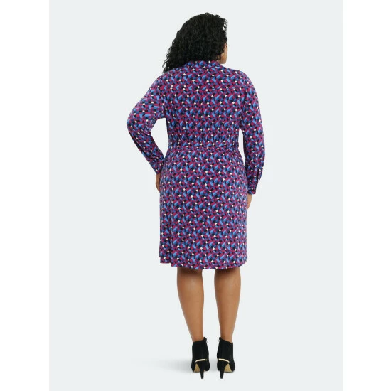Radiating pleated long sleeve shirt dress.