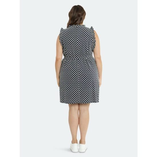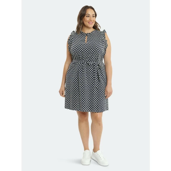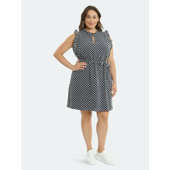 This shift dress is the perfect addition to your spring wardrobe! Gabby has ruffle detailing at the collar and shoulders, and a sweet waist sash.