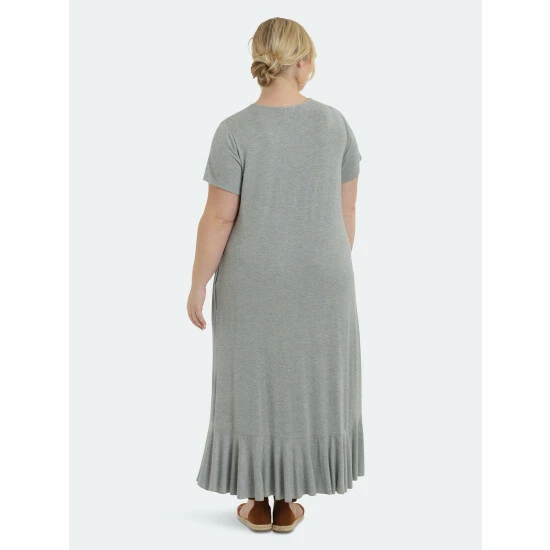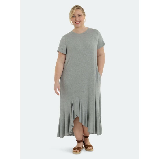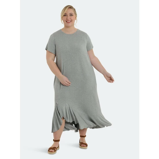 – T-shirt maxi- Pleated asymmetrical flounce- Adjustable waist sash