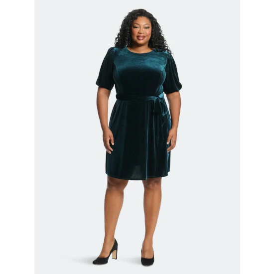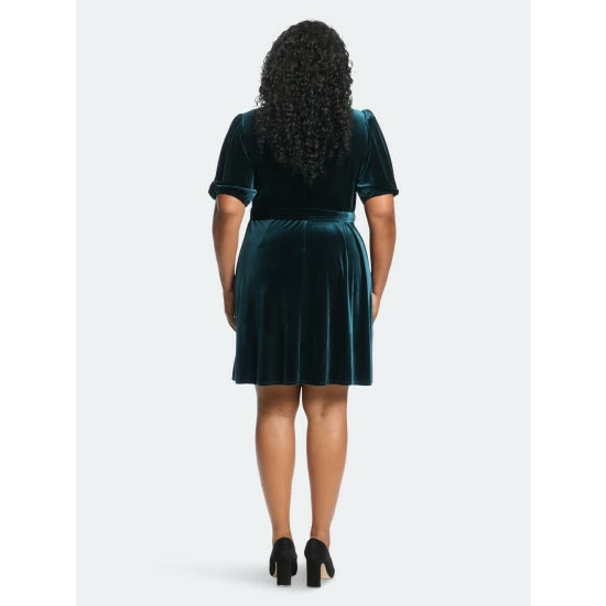 This velvet mini is jennie. We love her sweet waist tie and short puffed sleeves!