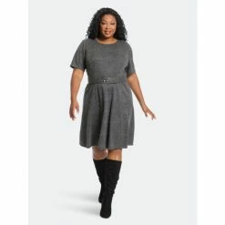 Maggy London London Times Curve Jesi Dresses Charcoal Heather