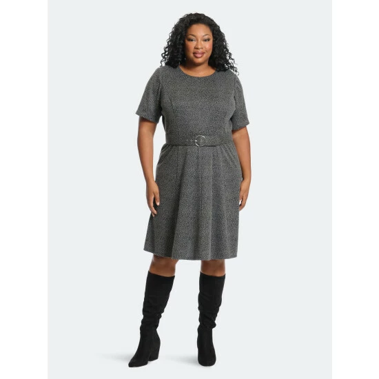 Meet jesi, a short-sleeved fit and flare with tons of attitude. We love her belted waist and abstract print!