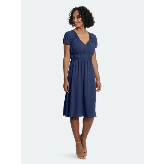 Elanna is a sweet cap sleeve midi. Her ruched bodice and bright hues make her perfect for spring!