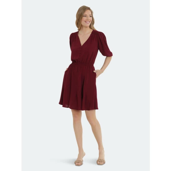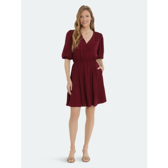 This smocked shoulder mini is jana. We love her puffed sleeves, button front bodice, and pockets!
