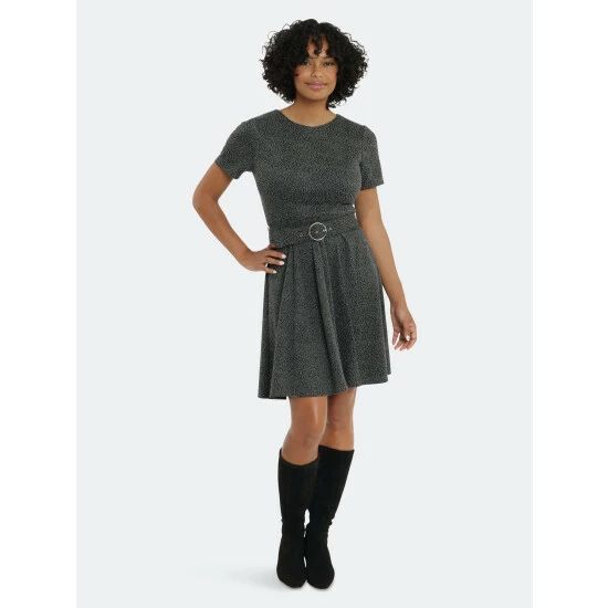 Meet jesi, a short-sleeved fit and flare with tons of attitude. We love her belted waist and abstract print!