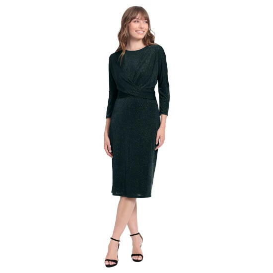Kelly is a sweet glitter knit midi. We love her dolman sleeves and twist front!