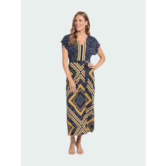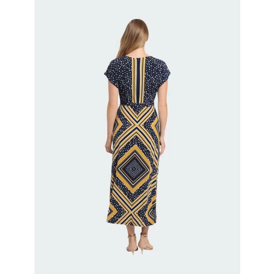 Meet marian. Marian is a v-neck, dropped flutter sleeve maxi with a spectacular geo-dot print.