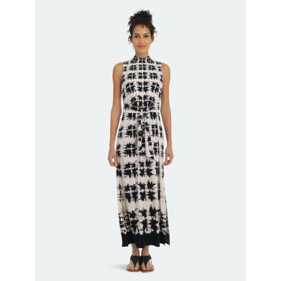 – Mock-neck with keyhole detail at center back- Adjustable tie front- Dynamic side slits – Maxi length