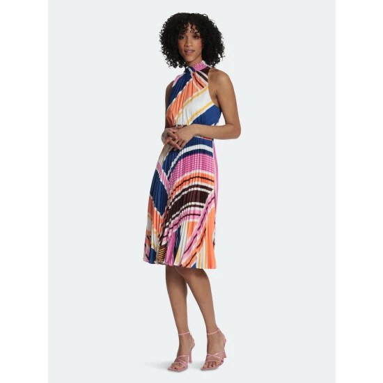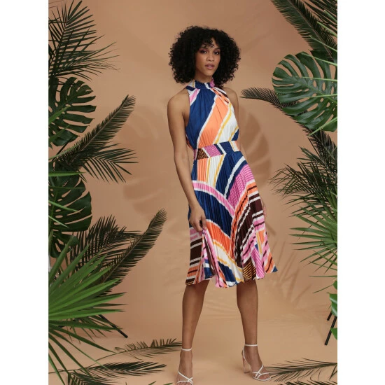 Meet marisol, a sweet halter neck midi. We love her striped design and pleated skirt! Marisol has missy and curve sizing available.