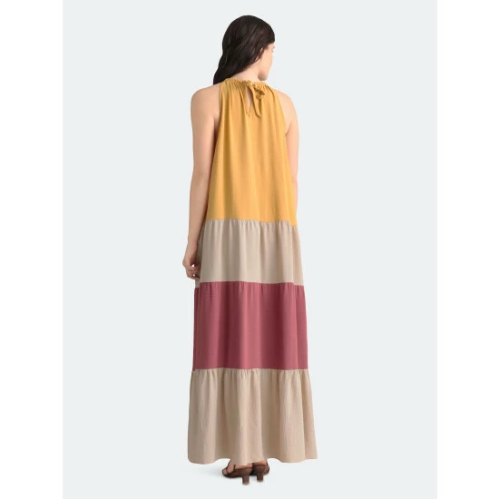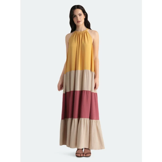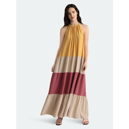 This color-block maxi is Perri. We love her easy silhouette and fun color-block design!