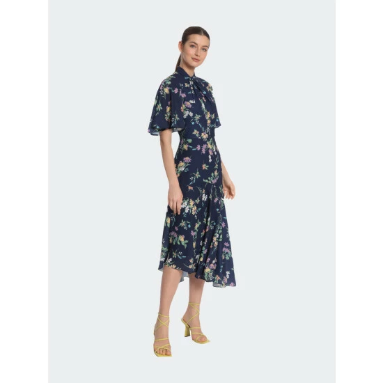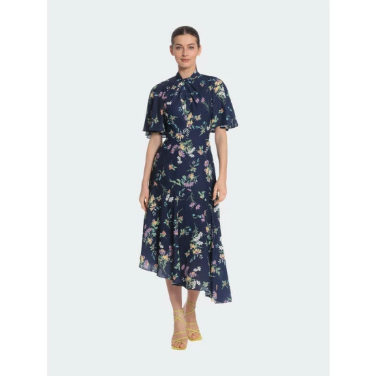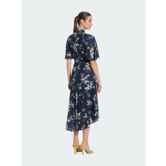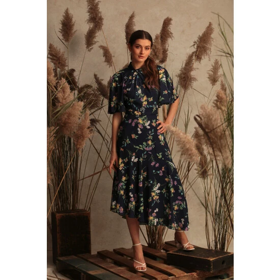 Meet Raya, an asymmetric, dark floral midi, perfect for any occasion. We can’t get enough of her twist neck and flutter sleeves!