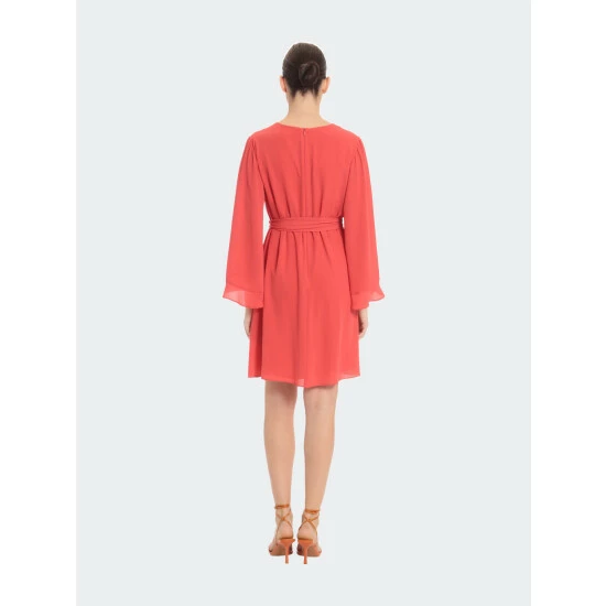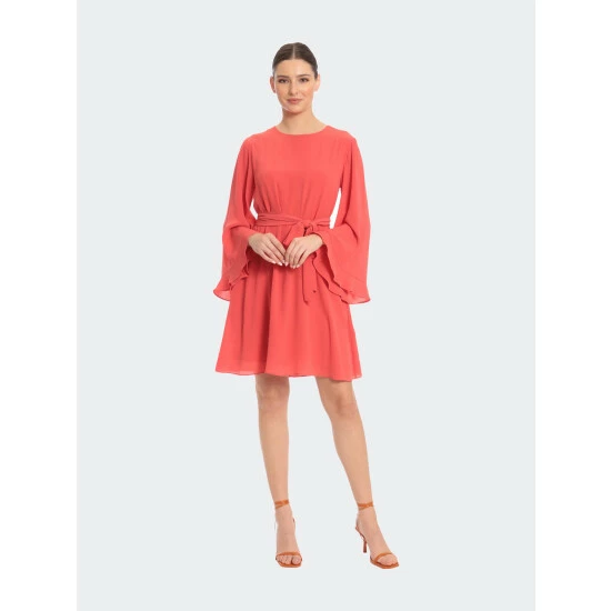Roman is a sweet flutter sleeve mini in our bestselling cayenne coral shade. We love her waist tie and easy silhouette!