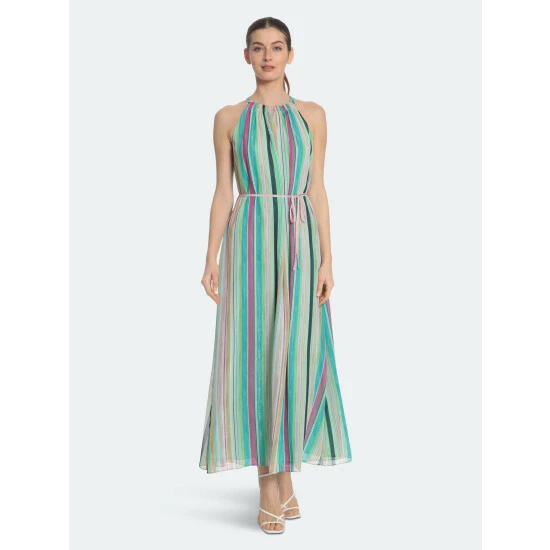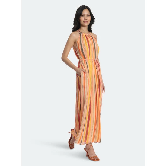 Romy is the ultimate striped dress of the spring. We love her halter neckline, waist tie and pockets!