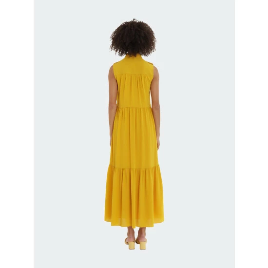 Meet talia, sweet lemon sleeveless shirtdress. We love her tiered skirt and cute fold-over shirt collar.