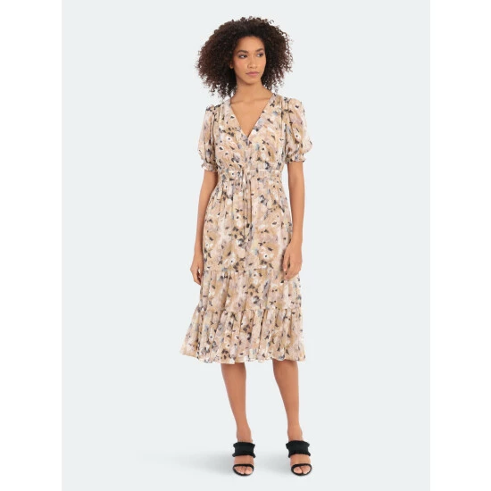 With its perfectly gathered short puff sleeves, a watercolor floral print, and timeless v-neck, the Valia is a dress designed to wear now and love later.